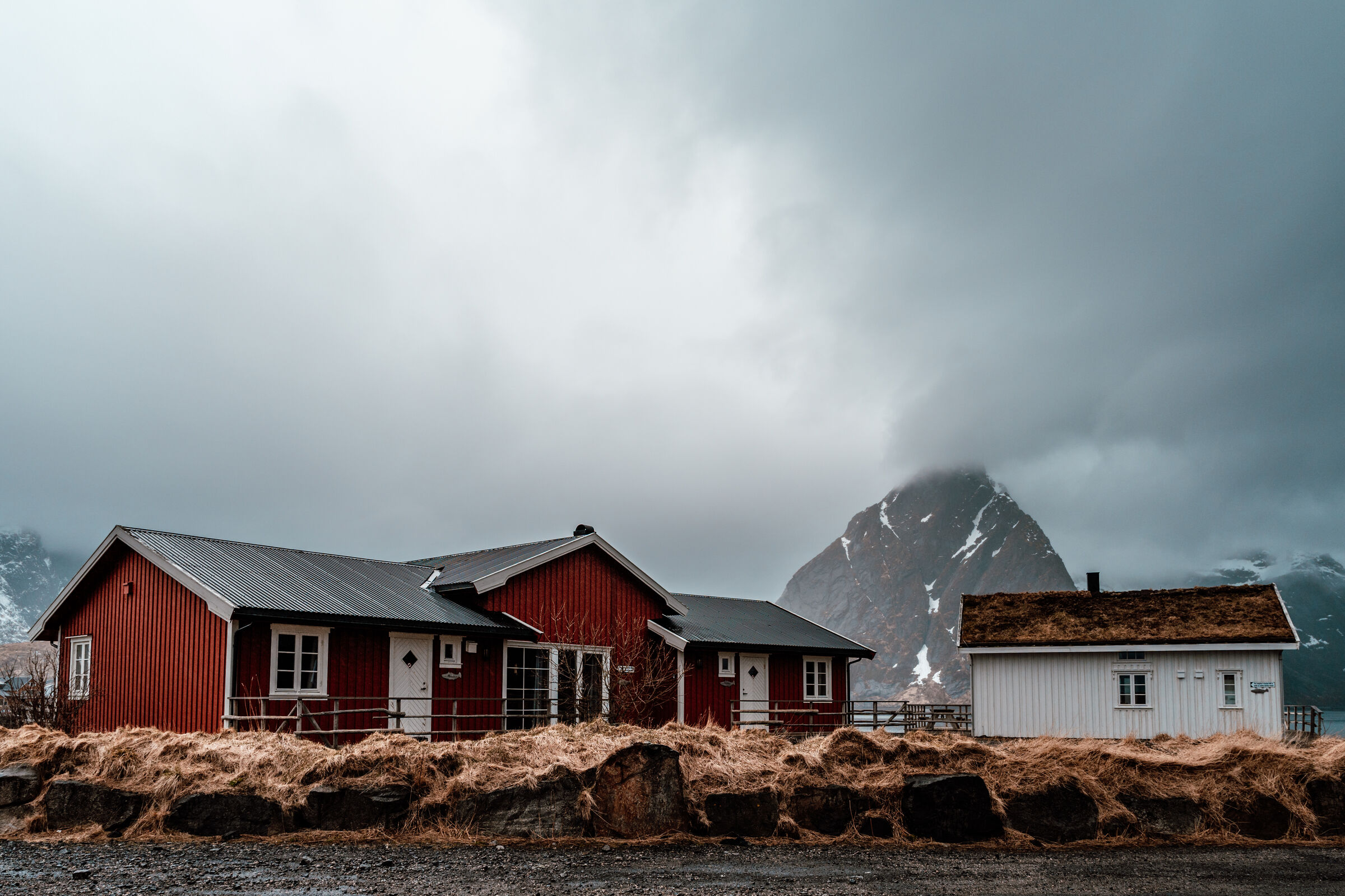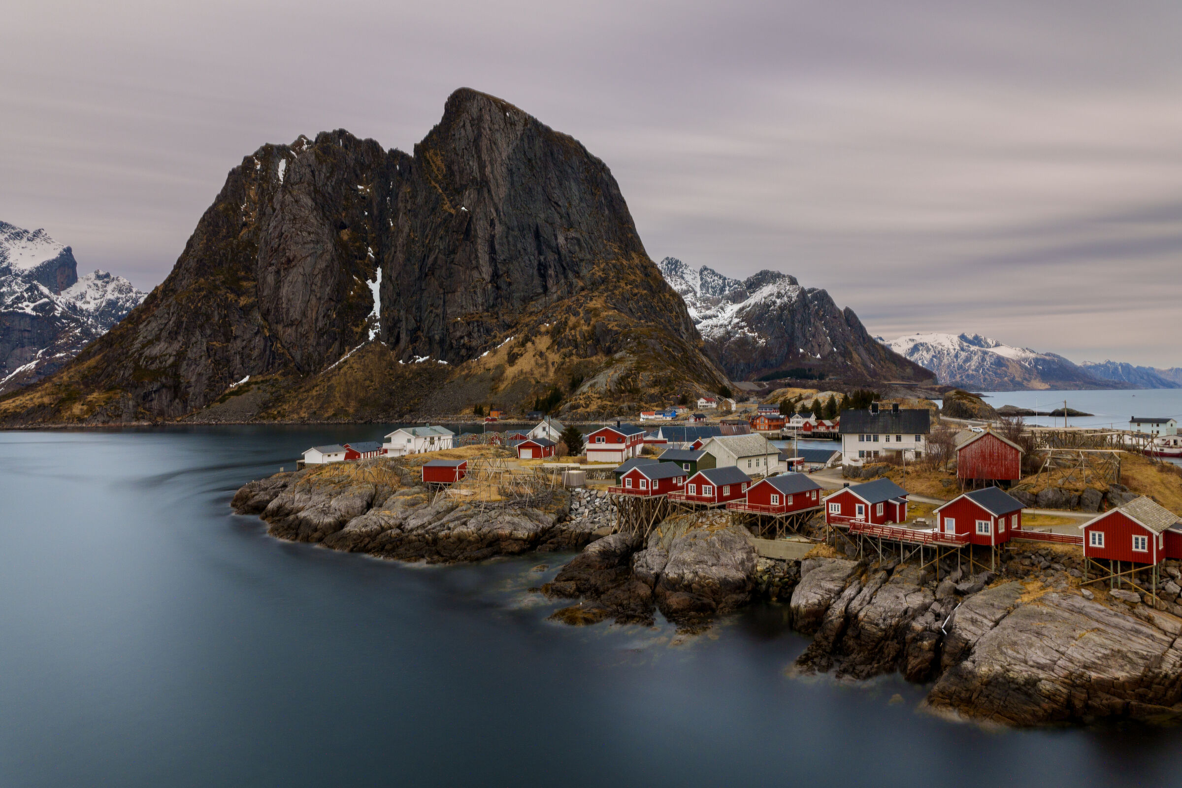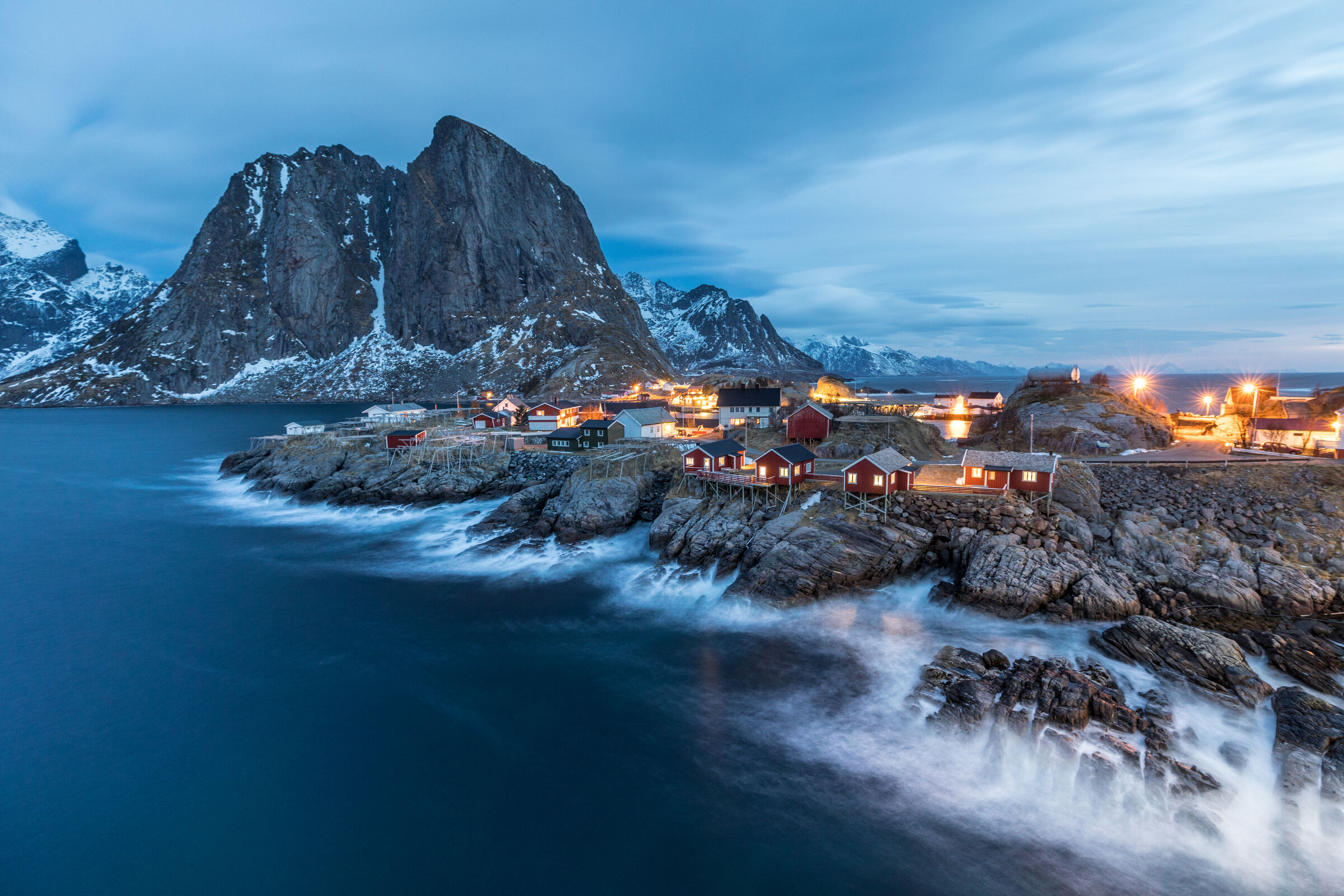 Fischerdorf im Januar bei Hamnoy, Lofoten