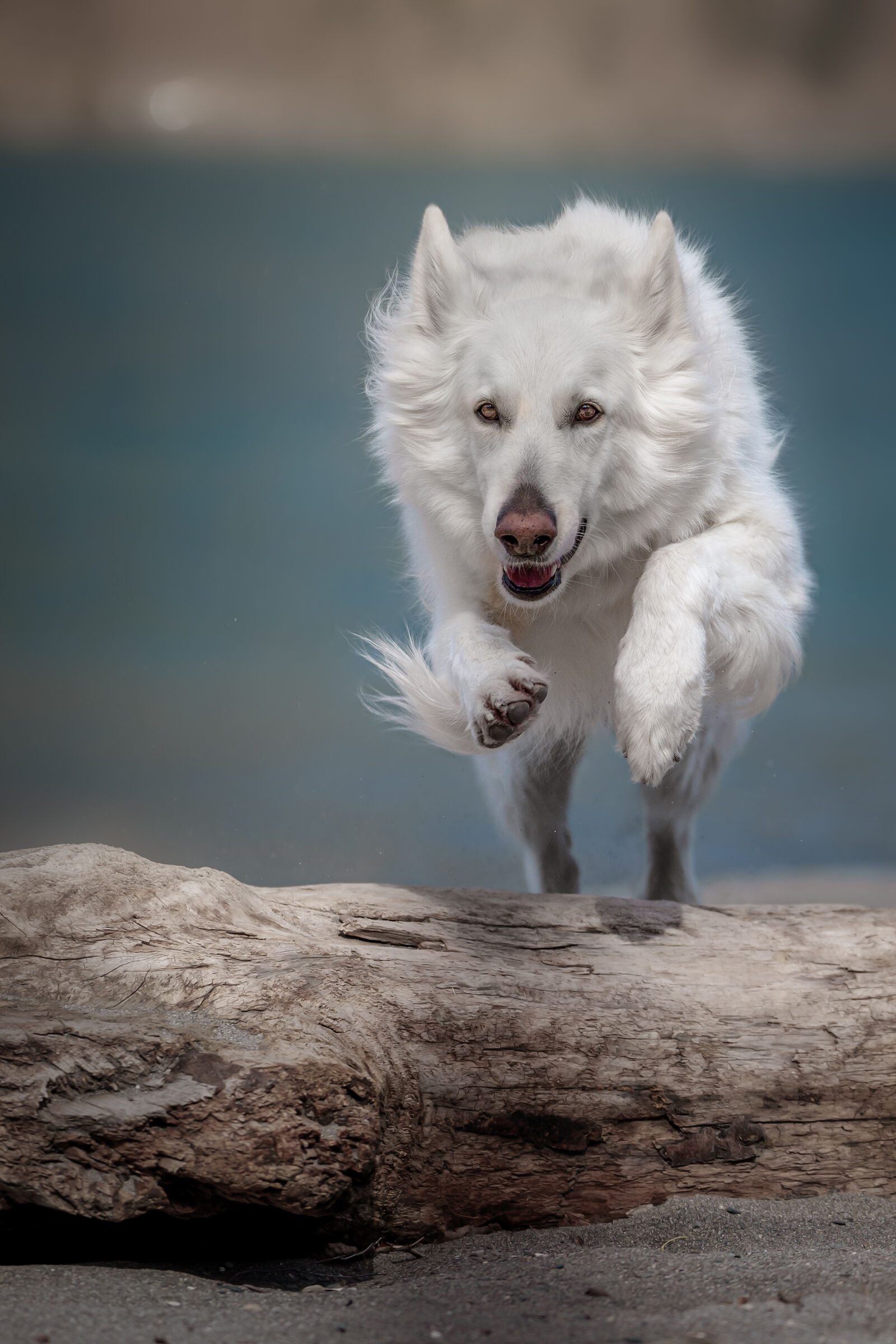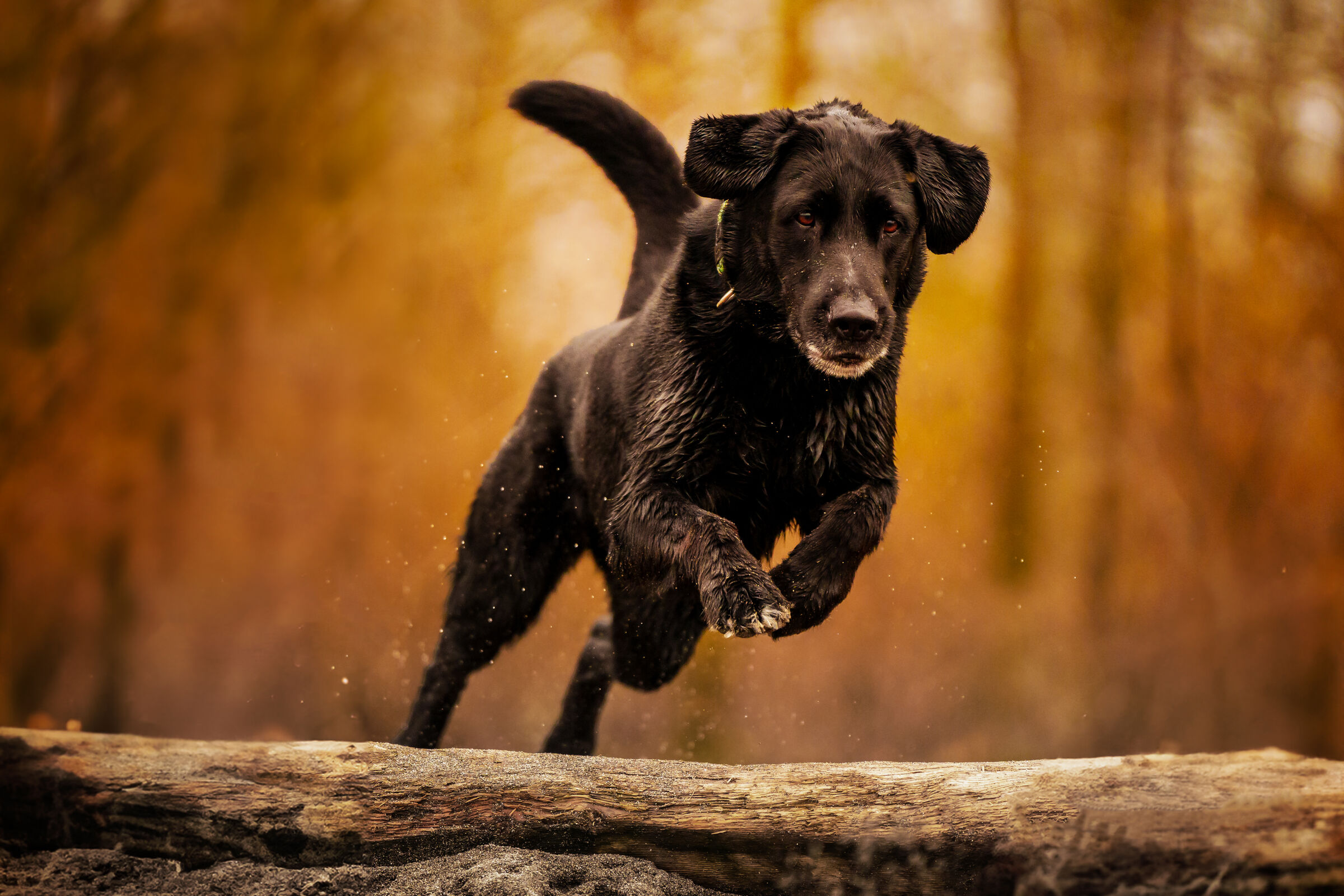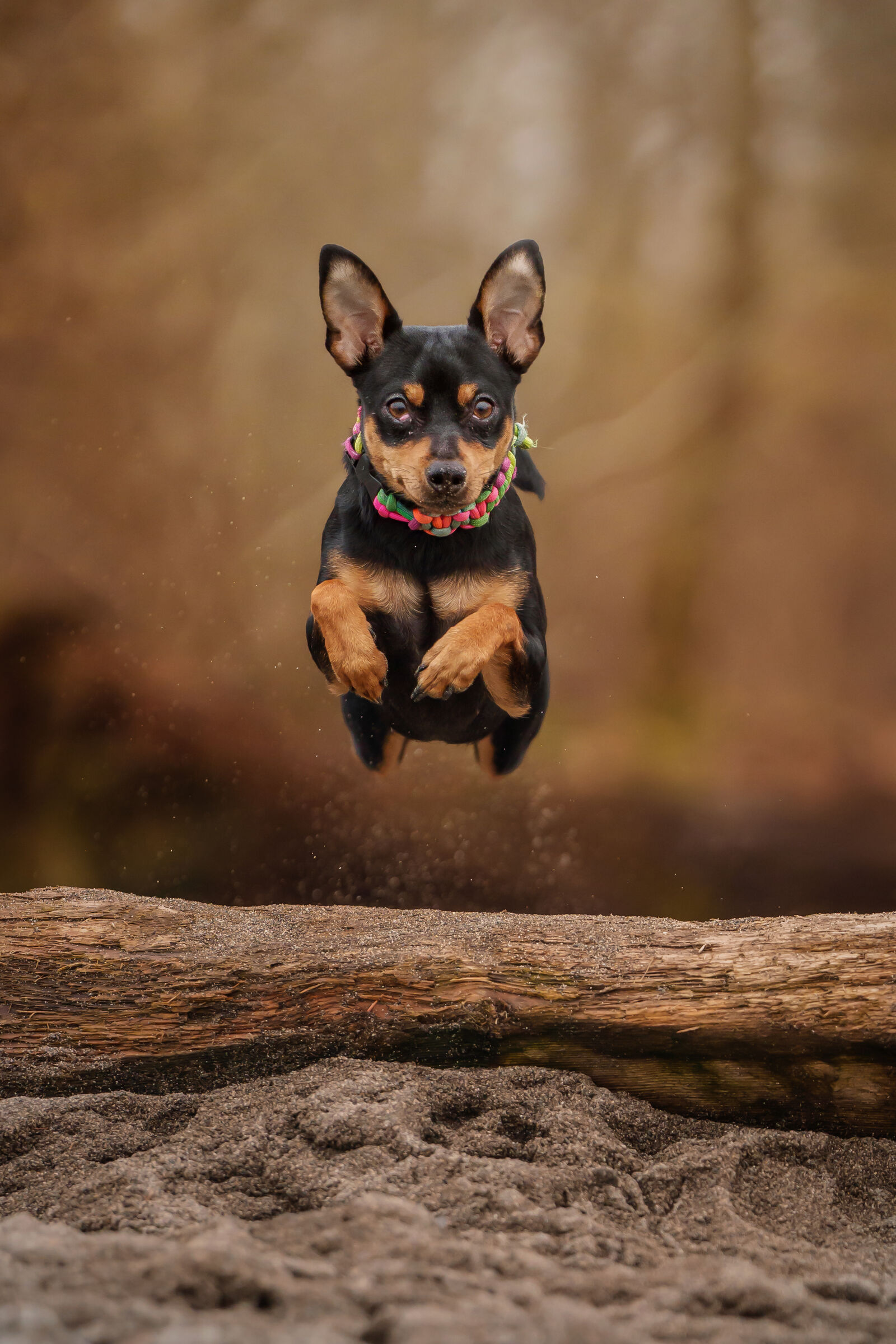 Action, Sprung über Baumstamm